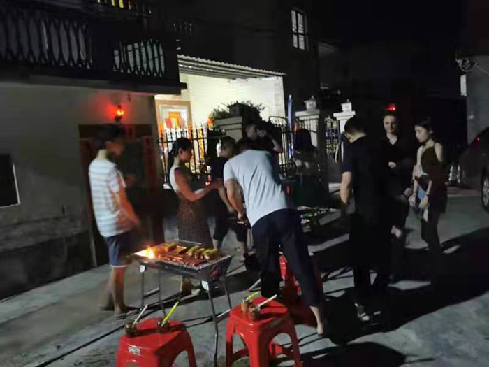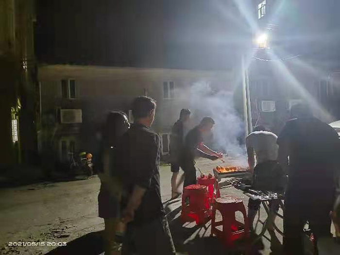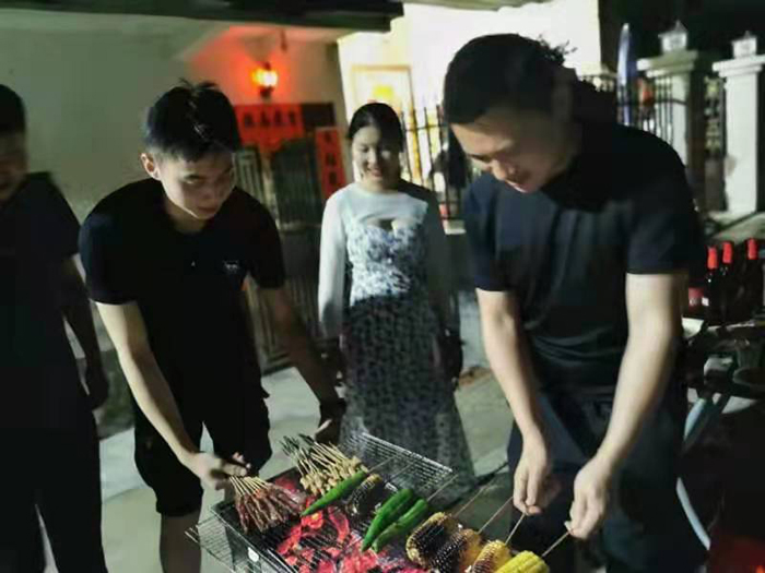 日落西山的時(shí)候,霞光灑落一片,大家踏著霞輝回到了民宿,玩樂了一天卻也還是精神飽滿,大家開始組織燒烤,烤肉香氣四溢,小伙伴們胃口大開,在大家的努力下,終于吃上了燒烤,酒足飯飽后,科電遠(yuǎn)揚(yáng)大家庭坐在一起,一邊賞月一邊聊天,從生活聊到了理想,直到夜深了,大家才依依不舍的回到了房間。