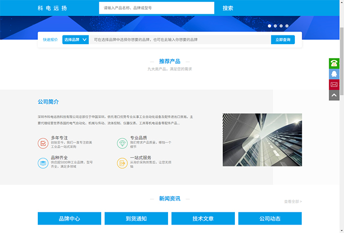 科電遠(yuǎn)揚(yáng)新的主網(wǎng)站秉承了簡約、清新的風(fēng)格,視覺效果極好,可以瞬間給訪問者留下非常深刻的印象。網(wǎng)站功能應(yīng)用則極其強(qiáng)大,有很好的邏輯架構(gòu),方便客戶節(jié)省寶貴時(shí)間快速搜索到最為關(guān)心的信息,精確找到自己的需求。另外,網(wǎng)站的布局和結(jié)構(gòu)也非常合理,盡管數(shù)據(jù)龐大,但絲毫不會(huì)影響到網(wǎng)站的訪問速度。因此,整合了眾多現(xiàn)代化元素和技術(shù)手段的新網(wǎng)站基本代表了科電遠(yuǎn)揚(yáng)嶄新的形象和實(shí)力,也給廣大客戶帶來了非常好的訪問體驗(yàn)!另外新版本官網(wǎng)有好的美觀和用戶體驗(yàn),網(wǎng)站有電腦端和移動(dòng)端,站內(nèi)搜索功能也做得比較強(qiáng)大,讓每個(gè)頁面都可以快速搜索站內(nèi)資源,當(dāng)然新網(wǎng)站的內(nèi)容還在緊張陸續(xù)更新中,盡請期待!