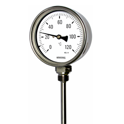 該測量裝置是金屬膨脹溫度計中的一種,其測量原理是基于將固體的不同線膨脹機械地傳遞給指針這一事實。雙金屬溫度計基本上由兩塊金屬板的螺旋帶組成,這些金屬板牢固地疊在一起,熱膨脹盡可能不同。當(dāng)溫度發(fā)生變化時,螺旋會彎曲并移動與其牢固連接的指針。他們?yōu)槟峁└鞣N設(shè)計和各種連接選項的雙金屬溫度計。該系列包括軸向和徑向變體的標(biāo)準(zhǔn)和工業(yè)版本,以及化學(xué)版本,您還可以通過可以旋轉(zhuǎn)和旋轉(zhuǎn)90°的連接獲得化學(xué)版本。