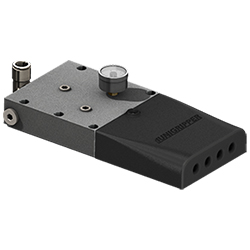 他們的換向閥使鼓風(fēng)機(jī)和抓手之間的真空軟管能夠連接到鼓風(fēng)機(jī)的入口或出口。當(dāng)處于出口位置時(shí),來(lái)自鼓風(fēng)機(jī)的廢氣通過(guò)夾持器,從而實(shí)現(xiàn)產(chǎn)品的快速釋放以加快循環(huán)時(shí)間并滿足夾持器頭部的高效清潔。對(duì)于處理長(zhǎng)而窄的物體(如木板)的抓取系統(tǒng),分布在框架上的多個(gè)抓取單元是一種常見(jiàn)的設(shè)計(jì)。為了促進(jìn)由鼓風(fēng)機(jī)產(chǎn)生的真空的分配,UniGripper提供Y連接和更先進(jìn)的分配管。分配管可以實(shí)現(xiàn)清潔和簡(jiǎn)單的安裝,并且可以配備滑閥等,以便在處理較短物體時(shí)停用一個(gè)或多個(gè)夾具。
